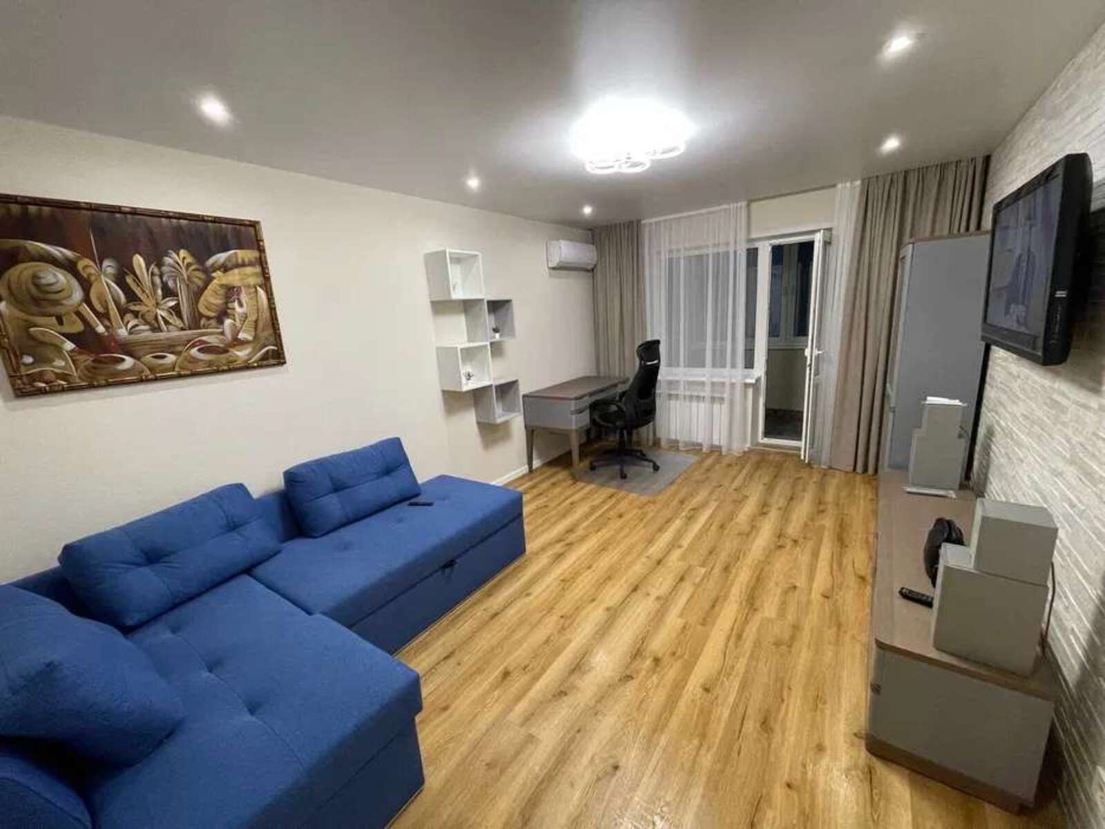 1-на квартира розташована на буль Кольцова 14 в ЖК Парковий Велика світла кімната 26 метрів . Двоспальне ліжко та