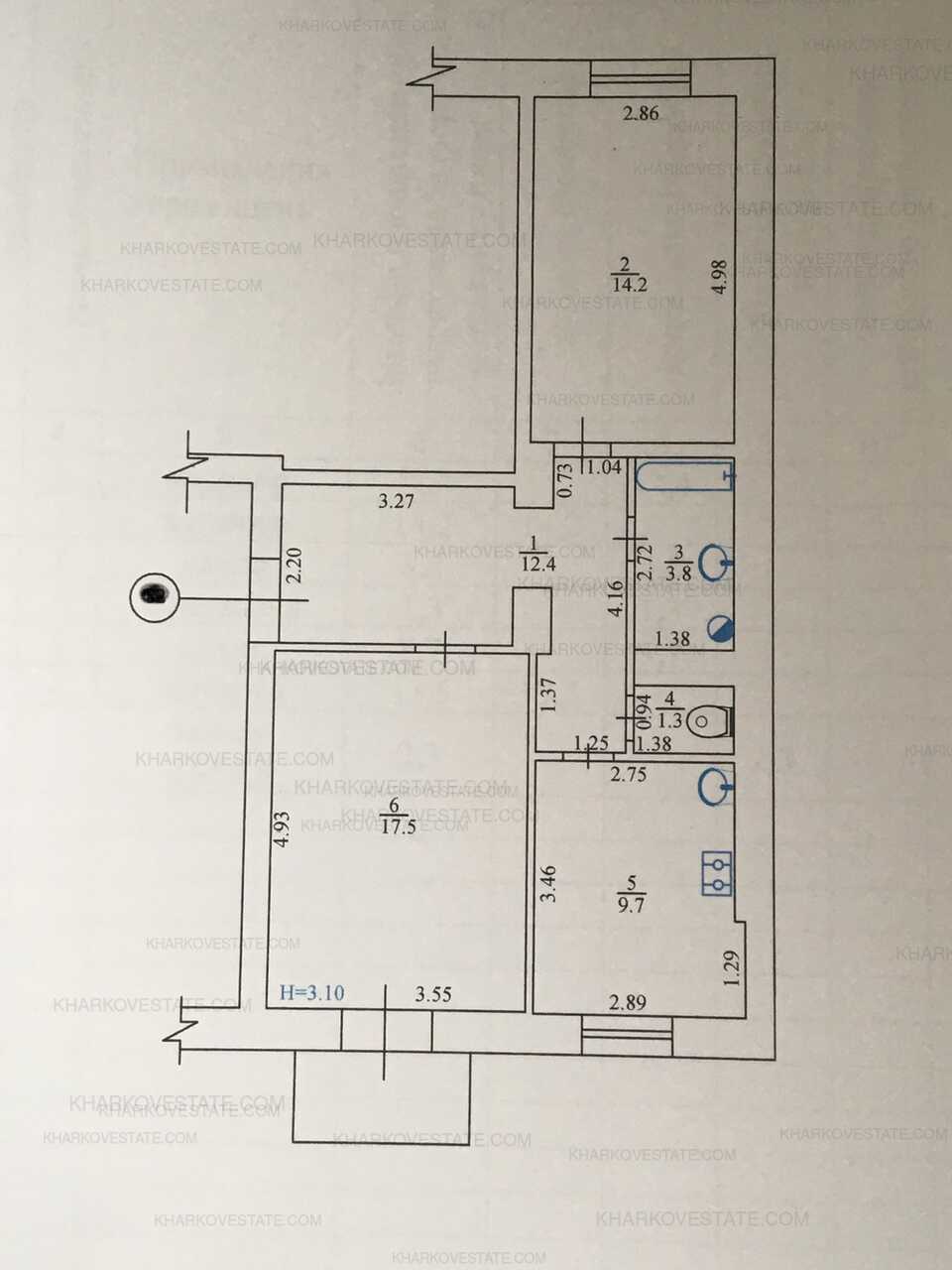 Спешите купить, в продаже! 2 комнаты в трехкомнатной квартире 17,9 м 2 и 12,4 м 2, аналог 2-х комнатной гостинки, кухня