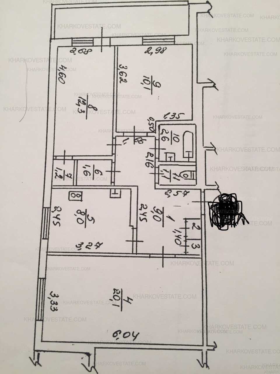 4-х к. кв. Сев. Салтовка-3 редкий вариант улучшенная планировка 90 м* кухня 9 м* лоджия 6 м* квартира в жилом состоянии,